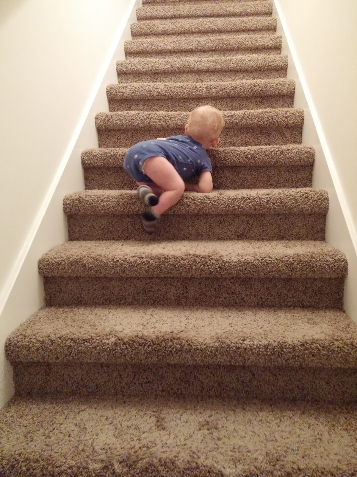 Jackson is learning all kinds of new games, but his favorite at the moment is "got your nose." He sat on the couch, well, he sat on Matt one night and kept grabbing Matt's nose for an hour. He laughed the entire time and had a great time. He also loves to race Matt and I. He does this cute tap thing with his hands on the floor as his way of "starting his engine." Once he taps his hands, you know that it's race time and you better get ready.